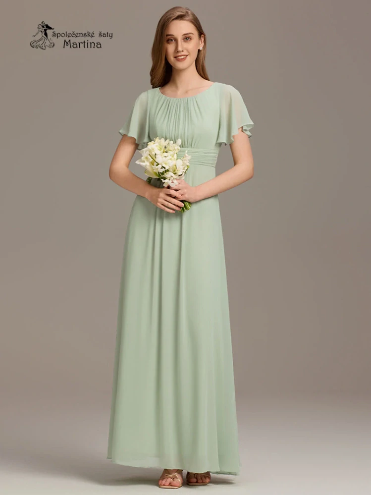 - Světle zelené šifonové šaty s rukávkem a žabičkováním na zádech "Stela"
