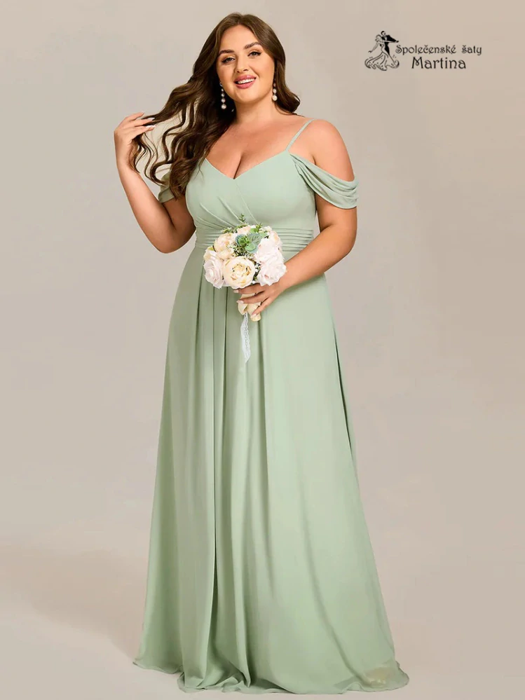 3. Světle zelené XXL šaty pro družičku či svatební hostku se spadenými rukávy "Emina"