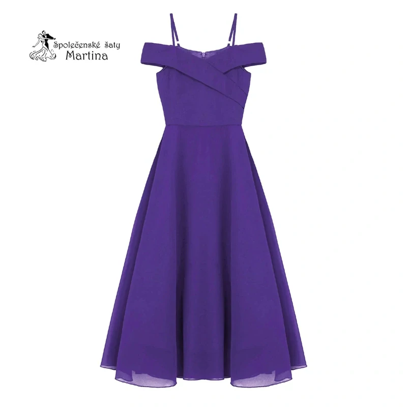 - Tmavě fialové dlouhé dívčí šaty se spadenými ramínky "Nelinka"