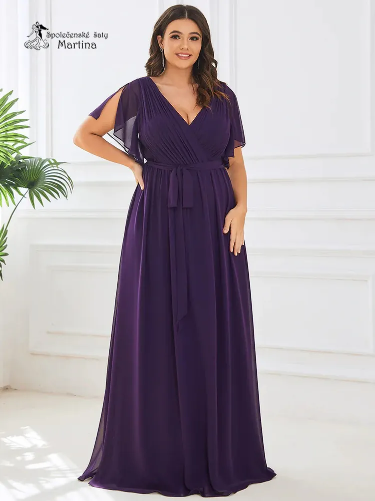 - Tmavě fialové společenské šaty "Katherine" s volnými rukávy - vel. 52