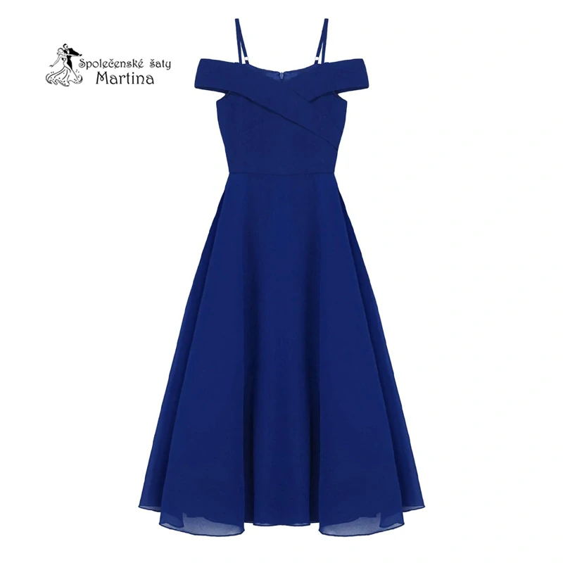 - Královsky modré dlouhé dívčí šaty se spadenými ramínky "Nelinka"