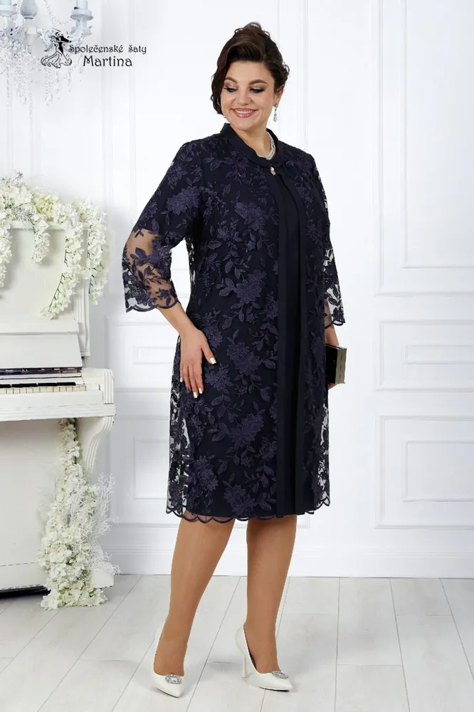 - Tmavě modré pouzdrové šaty s krajkovým kardiganem "Tristy"