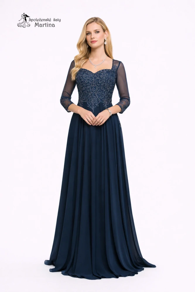 Tmavě modré společenské šaty "Marine" se zdobeným živůtkem - vel. S3 790 Kč/ ks3 132 Kč bez DPH