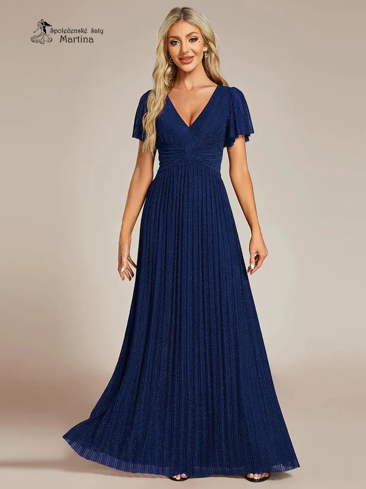 - Tmavě modré žebrované společenské šaty "Ebonny" s krátkými rukávy