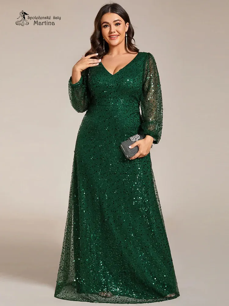 3. Tmavě zelené celozdobené společenské XXL šaty s dlouhými rukávy "Careen"