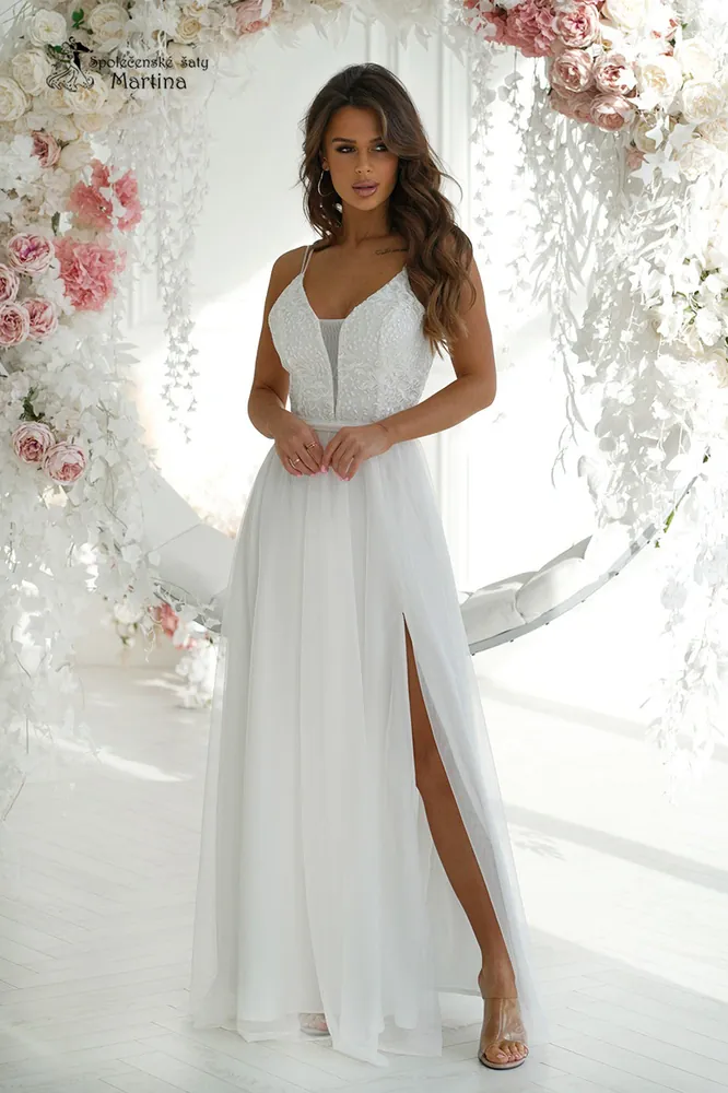 - Tylové ecru šaty "Marylin" s krásně zdobeným živůtkem - vel. 40