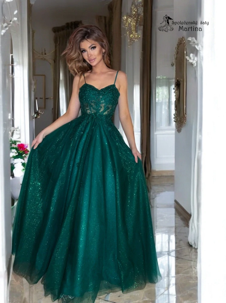 Tylové společenské šaty "Seychelles" s bohatou třpytivou sukní a korzetovým živůtkem - vel. 40cena od 3 890 Kč/ kscena od 3 215 Kč bez DPH