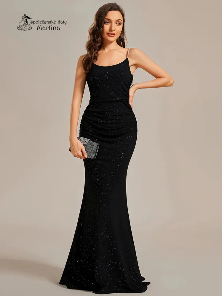 Večerní černé třpytivé šaty "Clarice" trumpetového střihu a se zdobenými ramínky - vel. 342 940 Kč/ ks2 430 Kč bez DPH