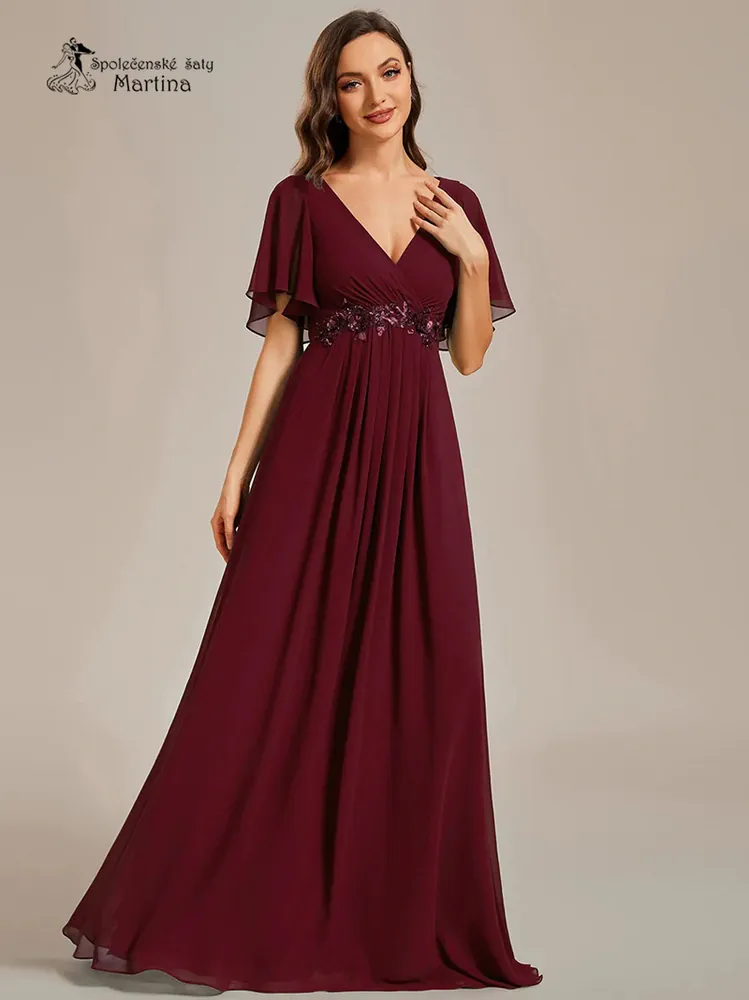3. Vínové šifonové šaty "Pandora" s volným rukávem a aplikací v pase