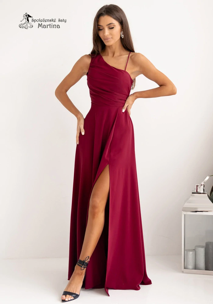 - Vínové společenské šaty "Monako" na jedno rameno a šněrováním na zádech - vel. 40