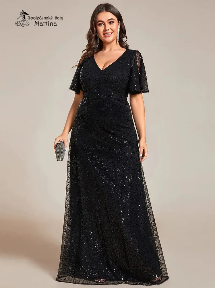 XXL černé celozdobené společenské šaty s volnými rukávy "Kitty"