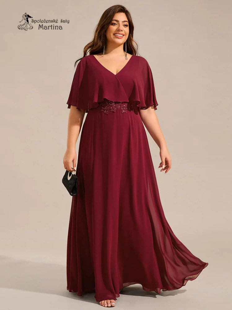 XXL vínové šifonové šaty "Valentine" s netopýřími rukávy - vel. 46