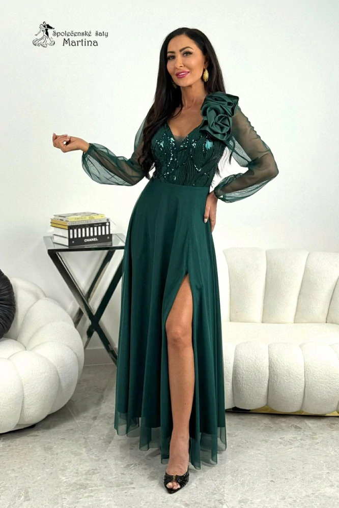 Zelené společenské šaty "Saffron" s květinovou aplikací a flitrovým živůtkem - vel. 362 790 Kč/ ks2 306 Kč bez DPH