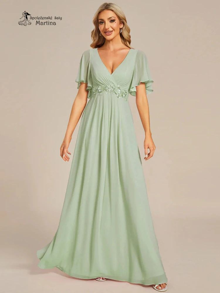 3. Zelenkavé šifonové šaty "Pandora" s volným rukávem a aplikací v pase